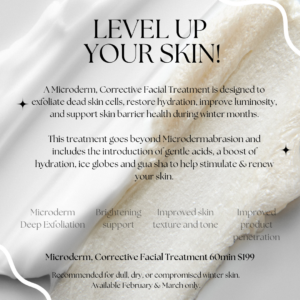 A MICRODERM, CORRECTIVE TREATMENT is designed to deeply exfoliate dead skin cells, restore hydration, improve luminosity and support skin barrier health during colder months.